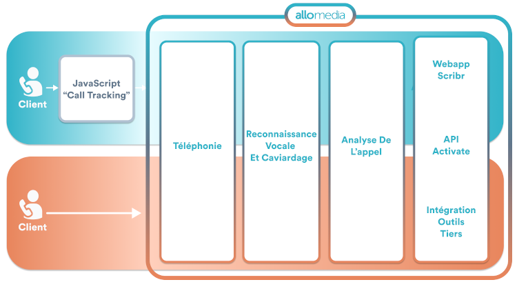 Pour permettre une transcription des appels téléphoniques la marque, Allo-Media offre une interconnexion téléphonique, déployable de plusieurs manières :